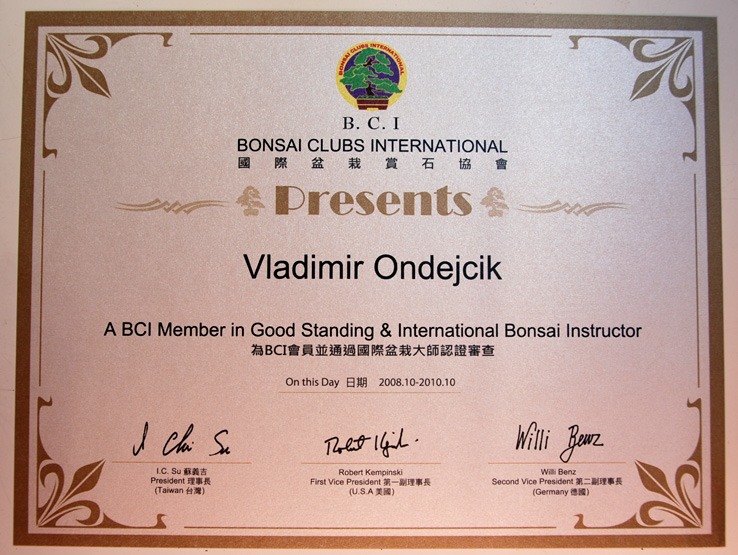 prestížnej celosvetovej organizácie BONSAI CLUB INTERNATIONAL