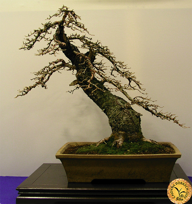 Aj tento dominantný a veľmi robustný smrekovec opadavý odfotografovaný na Noelanders Trophy v Belgicku je vytvarovaný podľa japonskej školy. Bonsaj je dielom Václava Nováka.