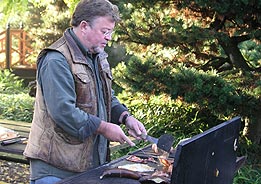 Golden October = Posledná jesenná akcia v bonsajovom centre Harry Tomlinsona bola vydarená. RNDr. Vladimír bol pozvaný ako hlavný demonštrátor podujatia a vytvaroval tu niekoľko zaujímavých stromov. Jeseň bola veľmi príjemná. Chladné skoré rána - Harry pripravoval i podával raňajky vonku v každom počasí - krásne vyfarbené lístie javorov - zbierka erotických bonsajov - to bola Greenwood Bonsai Garden v roku 2004.