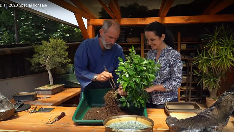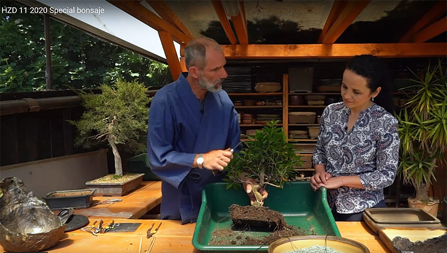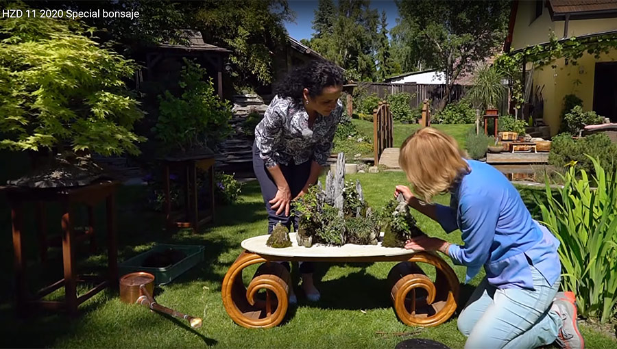 STV 1: HURÁ DO ZÁHRADY - ŠPECIÁL O BONSAJOCH. Celá relácia je venovaná bonsajom. Natáčala sa v Nitre, v 1. profesionálnom bonsajovom a čajovom centre Bonsai Slovakia - Čajovňa dobrých ľudí.