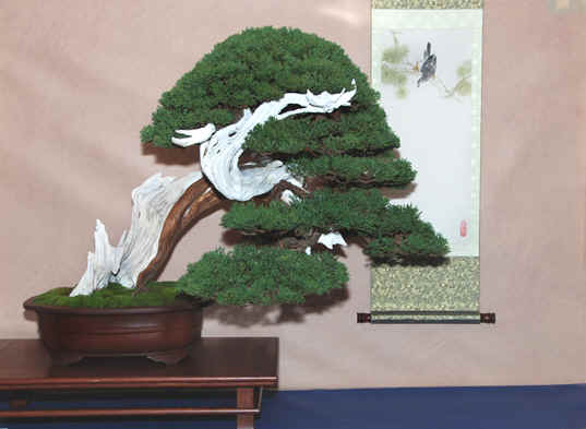 Značnému záujmu publika sa tešila aj prednáška Japonky Hideko Metaxas o umení keido. (Podobnosť mena pani Metaxas a známeho drinku nie je vôbec náhodná). Keido vysvetľuje základné estetické a filozofické princípy usporiadania predmetov v tradičnom japonskom výklenku tokonoma a dokonalého prezentovania bonsajov a suiseki na výstavách. Hlavným lídrom školy keido je Japonec Uhaku Sudó. Tento majster je známy aj ako významný tvorca bonsajov v literátskom štýle. Vytvoril centrum učenia keido severne od Tokia. Mali sme to šťastie navštíviť ho pred piatimi rokmi a hlboko nás zasiahla dokonalosť čajovní, záhrad i celého komplexu Chikufu-en, ktorým nás previedol. Učenie keido kladie dôraz na pochopenie detailov, ktoré tvoria alebo rušia harmóniu priestoru. K významným žiakom keida patrí aj Kunio Kobayashi, ktorý si na tomto základe vybudoval i prekrásny Palác bonsajov a záhradu Shunka-en. Hideko Metaxas sa snažila vysvetliť základné princípy keida priamo v praxi. Na kongresovom pódiu stála tokonoma, v ktorej Hideko aranžovala rôzne bonsaje a suiseki so zvitkami a bronzovými figúrkami. Výdatne jej pri tom pomáhal i Shinji Suzuki a jeho asistenti.