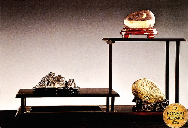 Precíznym pozorovaním nájdených objektov ďalej pochopili, že podľa vlastného estetického cítenia môžu exponáty klásť aj na stolíky (obr. 2) a umiestniť ich do výklenku v stene a pri takejto prezentácii umožniť mnohým ľuďom potešiť sa pohľadom na ne. Kamene sa prezentovali aj na cenných, pieskom naplnených zamatových alebo hodvábnych vankúšoch (obr. 2) alebo obrúskoch, ktoré svojou farbou plne harmonizovali s farbou kameňov.