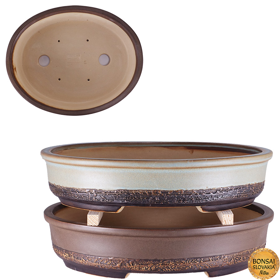 Dizajn každej misky je jedinečný, každá miska je originál. V týchto rozmeroch a tvare sa zhotovujú rôzne farebné variácie bonsajových misiek.